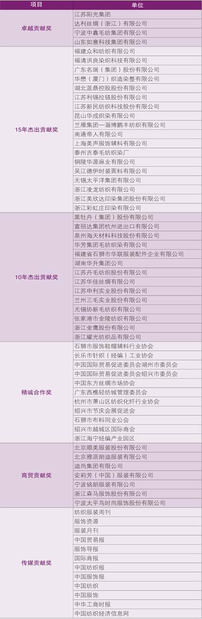 從1995 年到2014 年,20 年歲月匆匆。為感謝各界為展會(huì)做出的突出貢獻(xiàn),慶典上,主辦方向各級(jí)政府、產(chǎn)業(yè)集群和市場(chǎng)、合作機(jī)構(gòu)、各方媒體,尤其是海內(nèi)外的參展商和采購(gòu)商頒發(fā)了10 年展商杰出貢獻(xiàn)獎(jiǎng)、15 年展商杰出貢獻(xiàn)獎(jiǎng)、商貿(mào)貢獻(xiàn)獎(jiǎng)、傳媒貢獻(xiàn)獎(jiǎng)、精誠(chéng)合作獎(jiǎng)、20 年展商卓越貢獻(xiàn)獎(jiǎng),以感謝20 年來(lái)行業(yè)企業(yè)和友好合作機(jī)構(gòu)的相伴共生與持續(xù)助力(獲獎(jiǎng)名單詳見(jiàn)附圖)。