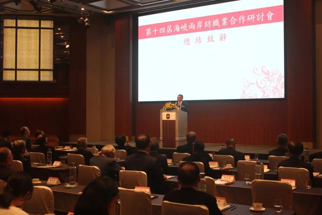 在會議總結(jié)環(huán)節(jié),臺灣紡織業(yè)拓展會董事長郭紹儀、中國紡織工業(yè)聯(lián)合會副會長徐迎新分別代表雙方做總結(jié)發(fā)言。