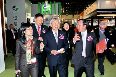 在中國(guó)貿(mào)促會(huì)副會(huì)長(zhǎng)楊兆華(右一)的陪同下參觀展會(huì)