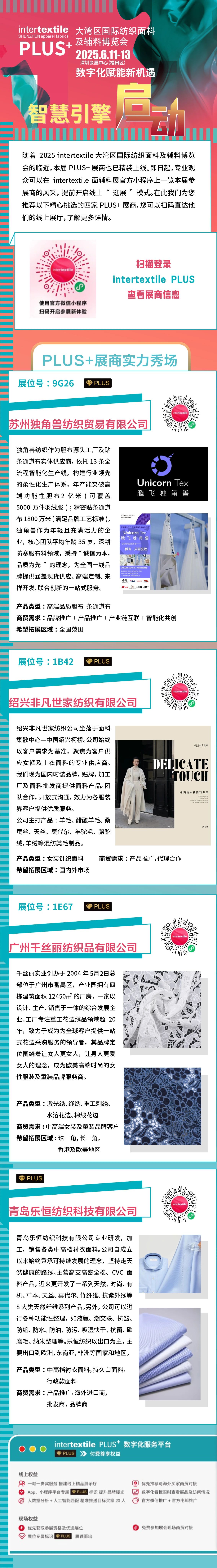 您現(xiàn)在的位置是:首頁(yè) > 要聞 2025Intertextile大灣區(qū)| PLUS+展商精裝上線 來(lái)源:紡織貿(mào)促會(huì) 發(fā)布日期:2025-06-04 字體: 【小】 【中】 【大】 分享: 熱門(mén)文章: 商貿(mào)速遞!大灣區(qū)針織展重點(diǎn)展商簡(jiǎn)介,預(yù)約可享現(xiàn)場(chǎng)一對(duì)一洽談 [2025-05-30] 搶先鎖定 | 大灣區(qū)國(guó)際針織博覽會(huì)觀眾注冊(cè)已啟動(dòng) [2025-05-29] 2025intertextile大灣區(qū) | "interte... [2025-05-29] 展商專(zhuān)訪|常熟飛龍:做非織造布機(jī)械領(lǐng)域“獨(dú)一份” [2025-05-27] 參展報(bào)名倒計(jì)時(shí) | 2025intertextile秋冬面輔... [2025-05-27] 展會(huì)直通車(chē)