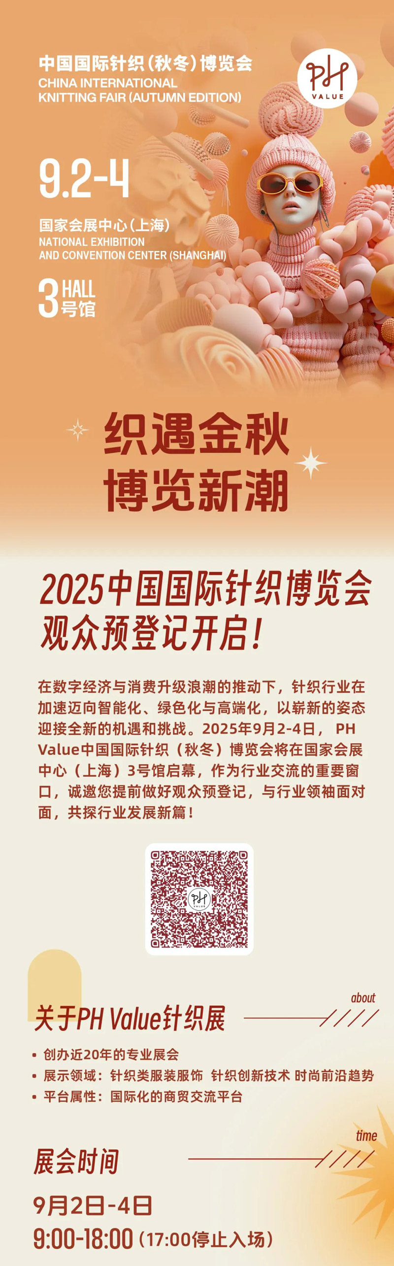 您現(xiàn)在的位置是:首頁 > 要聞 PH Value針織展觀眾預登記已開啟~ 快速上“碼”吧~ 來源:PHValue針織展 發(fā)布日期:2025-08-07 字體: 【小】 【中】 【大】 識別上方二維碼,快速領取入場證! 分享: 熱門文章: 【品牌·大會】海寧許村,靜候思想者,中國品牌的掌燈者。 [2025-08-07] 【商貿預約】2025Yarn Expo秋冬紗線展買家在線商貿... [2025-08-04] 展商速覽|膜材企業(yè)齊聚CINTE25 共推高功能涂層織物解決... [2025-08-01] 沉痛悼念王天凱同志 [2025-07-30] 關于征集、發(fā)布第十八屆中國國際產業(yè)用紡織品及非織造布展覽會創(chuàng)... [2025-07-28] 展會直通車