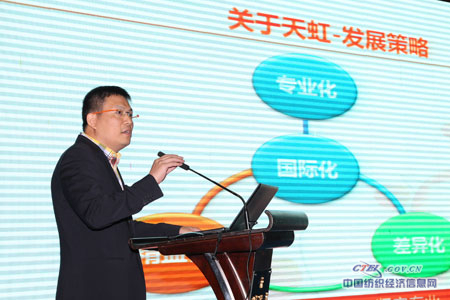 目前的發(fā)展現(xiàn)狀,實(shí)際上天虹今年在國內(nèi)從60萬紗錠變成了120萬紗錠,我們上個(gè)禮拜還剛剛并購重組了山東的24萬紗錠,我們也進(jìn)行了全面的升級(jí),依然看好中國市場跟中國紗廠的生存空間。